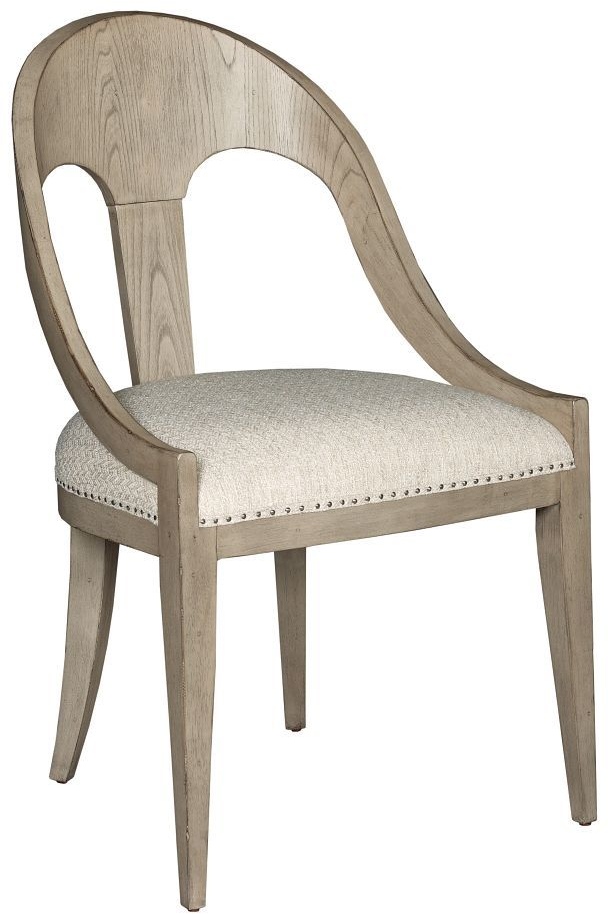 Newport Host Chair elegantly shaped with a splat in the center and an upholstered seat with performance fabric will nailhead trim. Works well in any setting. Inspired by a favorite spot in the Montana Bitteroot's, the West Fork collection reflects a laid-back, natural style for those seeking a casual decor.Read More