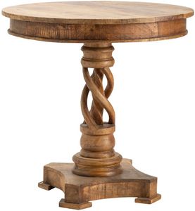 The Crestview Collection Bengal Manor Mango Wood Twist Accent Table displays a medium brown finish on enchanting mango wood. This piece offers a traditional twist on rustic style with its winding leg and sturdy base. This table is the perfect partner to a couch or lounging area.Read More