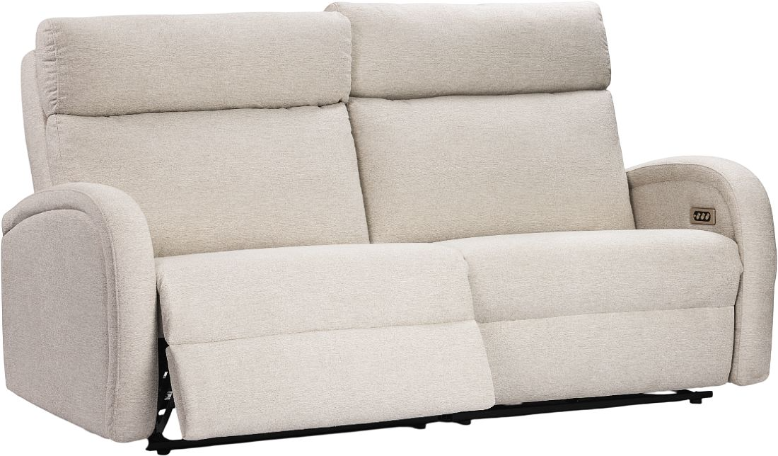 The Elran customizable Mel reclining condo sofa features a contemporary design and stylish rounded armrests. It is available in fabric, leather/vinyl combination, or all leather. Power option available with adjustable power headrest.Read More