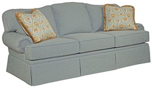 The Baltimore is our traditional camel-back sofa. It measures 86 inches in length, has a semi-attached back to keep things in place, and comes with two 18 inch toss pillows.